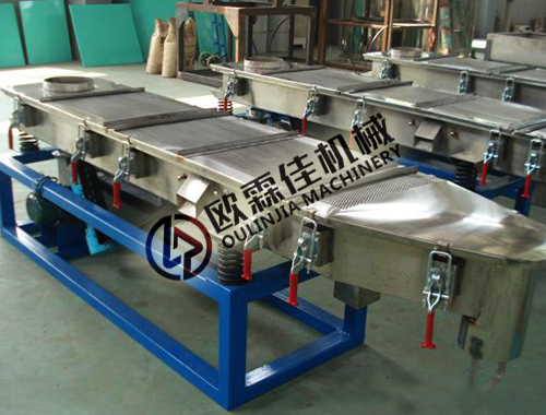 直線振動(dòng)篩是歐霖佳機(jī)械主營(yíng)產(chǎn)品之一,該篩分機(jī)是利用臥式振動(dòng)電機(jī)激振作為振動(dòng)源,使物料在篩網(wǎng)上被拋起,同時(shí)向前作直線運(yùn)動(dòng),故稱作直線振動(dòng)篩,又稱直線篩;物料從給料機(jī)均勻地進(jìn)入篩分機(jī)的進(jìn)料口,通過多層篩網(wǎng)產(chǎn)生數(shù)種規(guī)格的篩上物、篩下物、分別從各自的出口排出。具有耗能低、產(chǎn)量高、結(jié)構(gòu)簡(jiǎn)單、易維修、全封閉結(jié)構(gòu),無(wú)粉塵溢散,自動(dòng)排料,更適合于流水線作業(yè)。